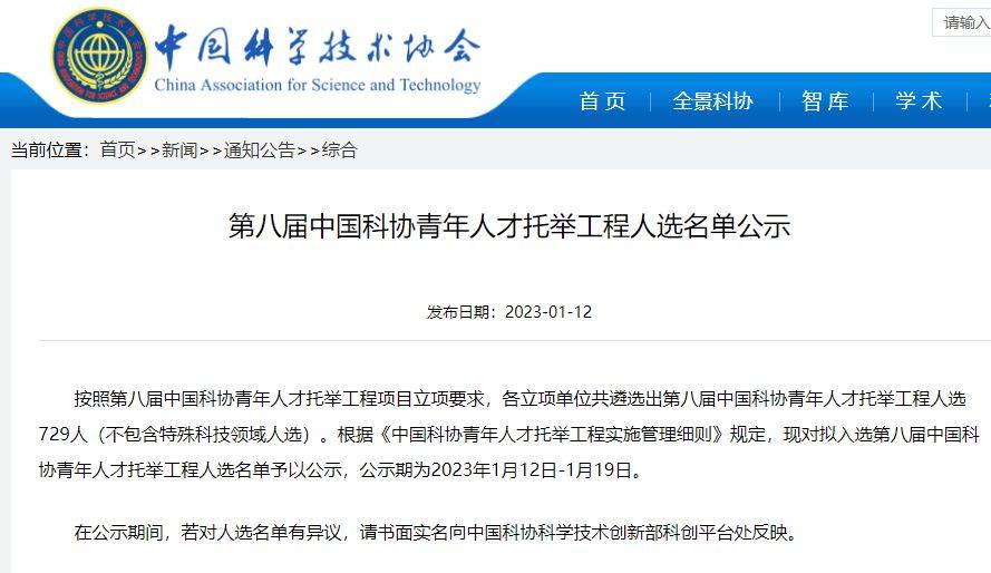 公示|第八届中国科协青年人才托举工程人选名单出炉!
